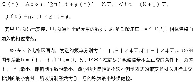 MSK是一種高效的調制方法,具有恒包路、頻率利用率高、誤碼比特率低和自同步等特點,特別適合移動通信系統使用。其數學表達式為