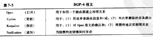 BGP的設計目標是使不同自治系統中的BGP路由器能夠互相協作、交換路由信息(在 該標準中路由器稱為網關)。協議的運行要交換一些報文,這些報文通過TCP連接傳送。表 7-5劌出了有關報文的一覽表(以當前版本BGP-4為例)。