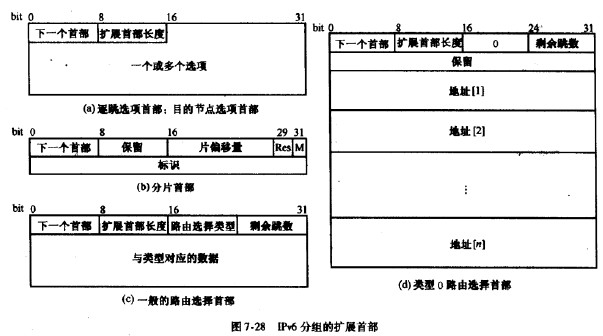 目前,IPv6有以下6種擴展首部,它們分別是: