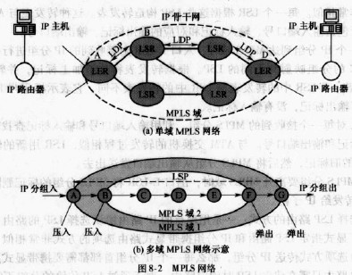 最簡單的MPLS網絡只包含一個域,其網絡結構如圖8-2(a)所示。其基本工作過程簡述如下。