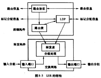 摘要:通信工程師交換技術標記交換路由器結構:標記交換路由器(LSR)由兩部分構件組成,一部分是控制構件,另一部分是轉發構件,如圖8-3所示。控制構件通過執行傳統的路由協議(如OSPF,BGP-4)與其他路由器交換路由信息,以此創建并維護路由表。