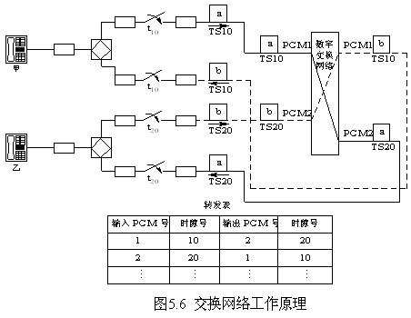 當(dāng)兩用戶要建立呼叫時,就要根據(jù)兩用戶所使用的PCM線號和時隙號,在交換網(wǎng)絡(luò)的內(nèi)部建立通路,使用戶信息從網(wǎng)絡(luò)入端沿著已建立的通道流向網(wǎng)絡(luò)出端完成交換。交換網(wǎng)絡(luò)的內(nèi)部通路被稱為連接,對連接的控制是通過一張叫做“轉(zhuǎn)發(fā)表”的表格實(shí)現(xiàn)的。