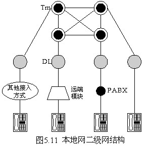 本地電話網中設置端局DL和匯接局Tm兩個等級的交換中心,組成二級網結構。二級網的基本結構如圖5.11所示。