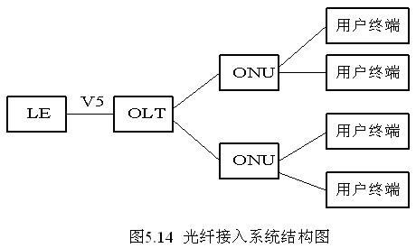 光纖接入系統的結構見圖5.14,主要包括光線路終端(OLT)、光網絡單元(ONU)等部分。