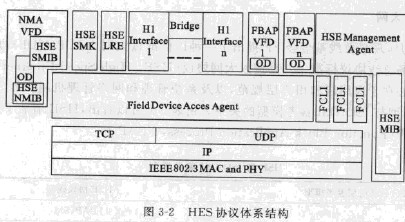 圖3-2為高速以太網現場總線HSE的體系結構。HSE是以標準的“以太網+TCP(UDP)/IP”為通佶平臺,定義了應用層實時通信協議和用戶層功能塊應用進程。HSE充分引用現有的商用網絡協議:DHCP負責HSE現場設備IP地址動態分配:SNTP實現網絡中各個現場設備之間的時鐘同步;SNMP實現對HSE現場設備在線管理。