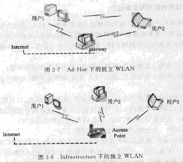 IEEE802.11標(biāo)準(zhǔn)中定義了兩種組網(wǎng)模式,分別是ad-hoc模式和infrastructure模式i此外,從網(wǎng)絡(luò)拓?fù)浣Y(jié)構(gòu)來看,無線局域網(wǎng)又可以分為獨(dú)立式無線局域網(wǎng)和非獨(dú)立無線局域網(wǎng)。