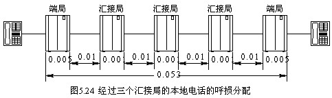 (2) 數字本地電話網的全程呼損應≤0.042,如圖5.23所示。