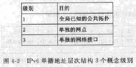 子網(wǎng)前綴接口ID在IPv4和IPv6之間最重要的變化之一是用于單播地址的分配策略和最后得到的地址層次結(jié)構(gòu)。前面講過最初IPv4地址方案,它使用的兩級(jí)層次結(jié)構(gòu)地址分為全局前綴和后綴。如圖4-3所示,IPv6采用具有3個(gè)概念級(jí)別的地址層次結(jié)構(gòu),擴(kuò)展了IPv4的概念。