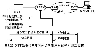 分組終端接入分組網時,按照ITU-T X.32建議標準進行操作,如圖7.24所示。