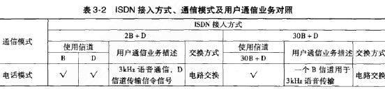 ISDN的應用范圍十分廣泛,主要的應用領域有局域網、電視會議、家庭(居家辦公、上網、電子購物、自動讀表)、視頻領域(桌面系統(tǒng)、遠端教學、遠程醫(yī)療等)、商業(yè)銷售點(POS)系統(tǒng)、證券交易等。表3-2為ISDN接人方式,通信模式及用戶通信業(yè)務的對照。
