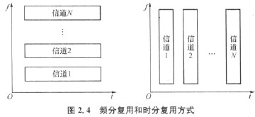 時分多路通信常用的復用方式有頻分復用和時分復用兩種。它們分別按頻率和時間劃分信道。如圖2.4所示。