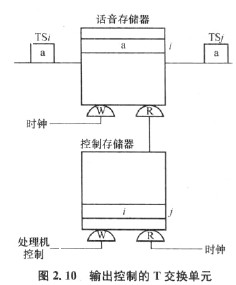 輸入控制方式中,話音存儲器是控制寫人、順序讀出。控制存儲器仍為控制寫人、順序讀出。但要注意到,為了完成TSf與TS)的交換,在輸出控制時,是在控制存儲器的第j個單元寫人,在輸人控制時則是在控制存儲器的第i個單元寫人)。