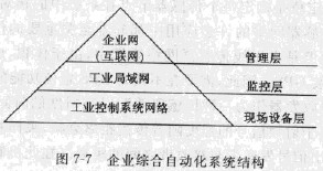 工業控制網絡作為工業企業綜合自動化系統的基礎,從結構上可分為3個層次,即管理層、監控層和現場設備層,如圖7-7所示。