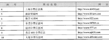 區域性信息分類網站是指網站上的信息來源僅僅是某個特定的E域和地R,并且此網站的經營范圍也就是這些信息的來源地K。目前,影響比較人的地方性信息分類網站,如表12-3所示。