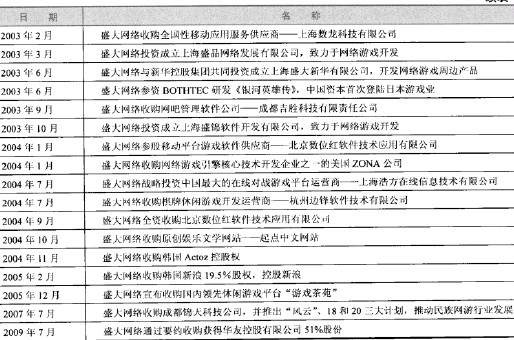 表13-2盛大網(wǎng)絡(luò)并購(含投資)的公司一覽表
