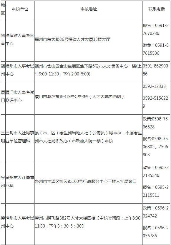 (注:2017年曾報考且報考級別不變的報考人員免于現場資格審核;其余報考人員均需到所屬報名點進行資格審核;異地轉入福建考試的報考人員需重新進行現場資格審核。如本人無法到場審核可委托他人持相關證件原件及復印件進行審核。)