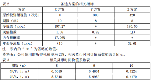 2.戊化工公司擬進行一項固定資產投資,以擴充生產能力?,F有X,Y,Z三個方案備選。相關資料如下: