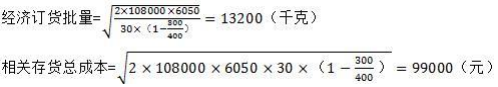 (2)從T企業購買該材料,每次訂貨費用為6050元,年單位材料變動儲存成本為30元/千克。材料陸續到貨并使用,每日送貨量為400千克,每日耗用量為300千克。