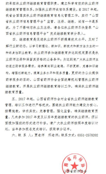摘要:近3年為參加山西執業藥師繼續教育的學員,可以登錄山西省藥師協會官網“山西省執業藥師繼續教育網授、面授統一報名系統”進行補修,具體辦法如下: